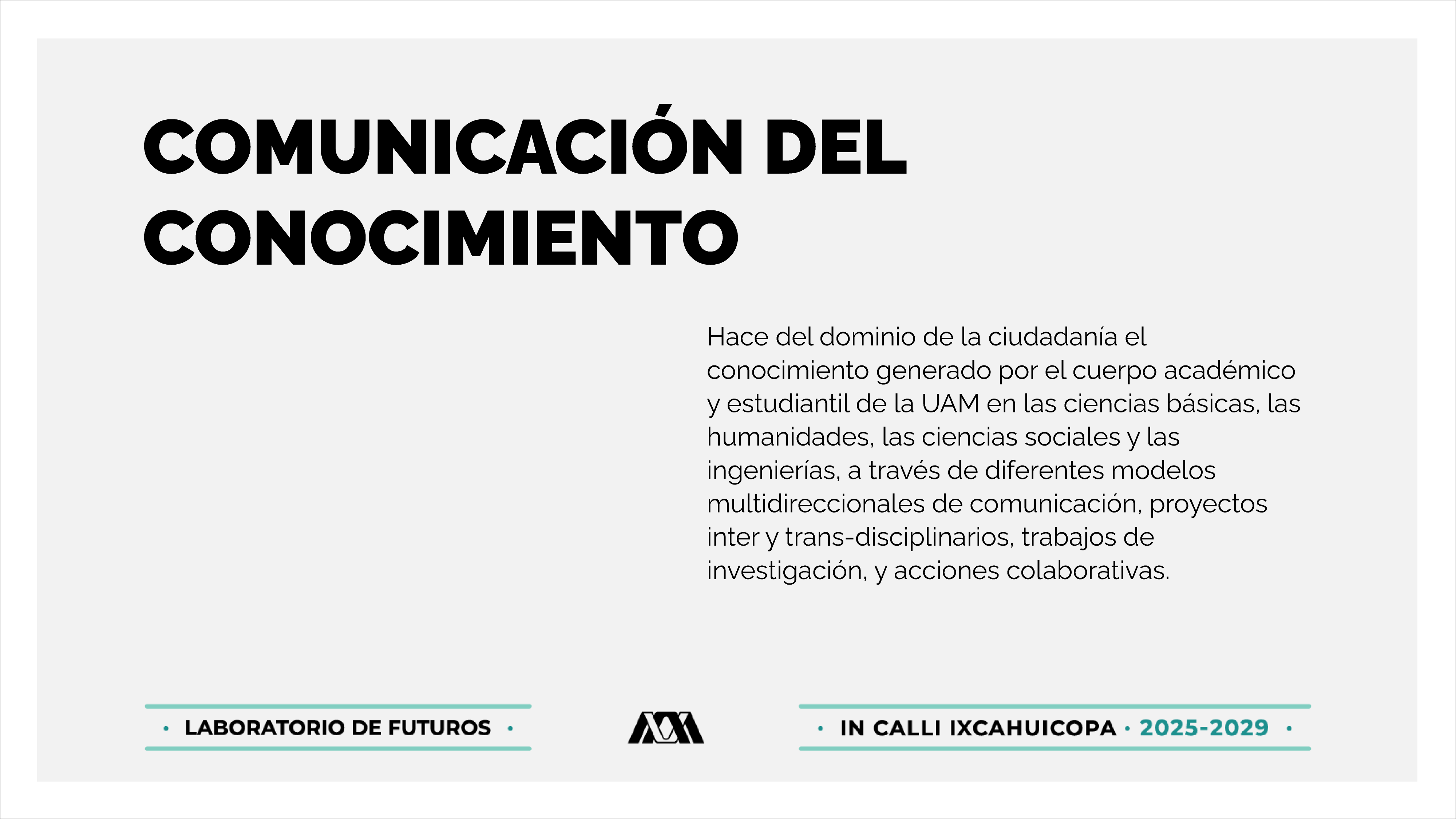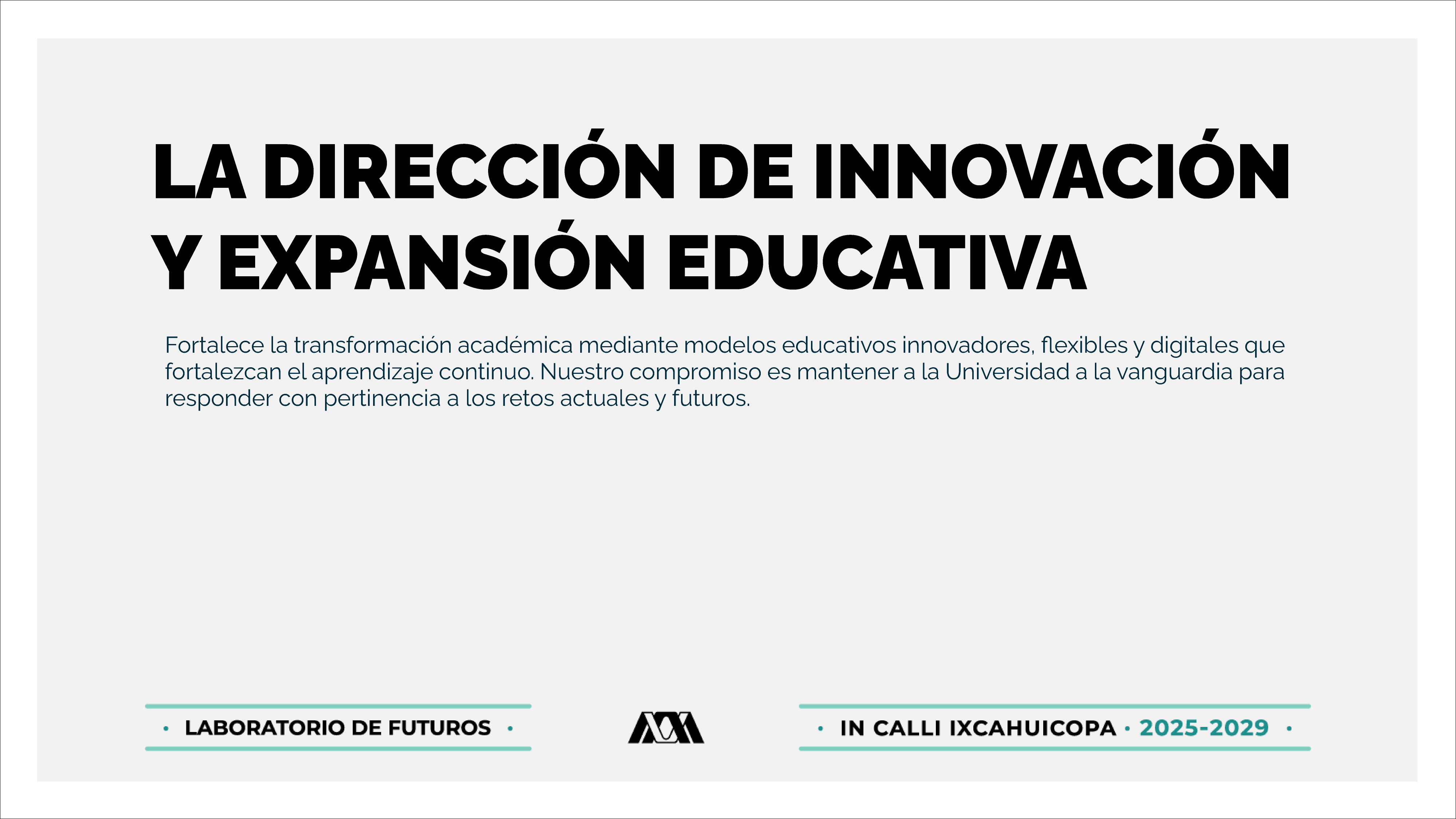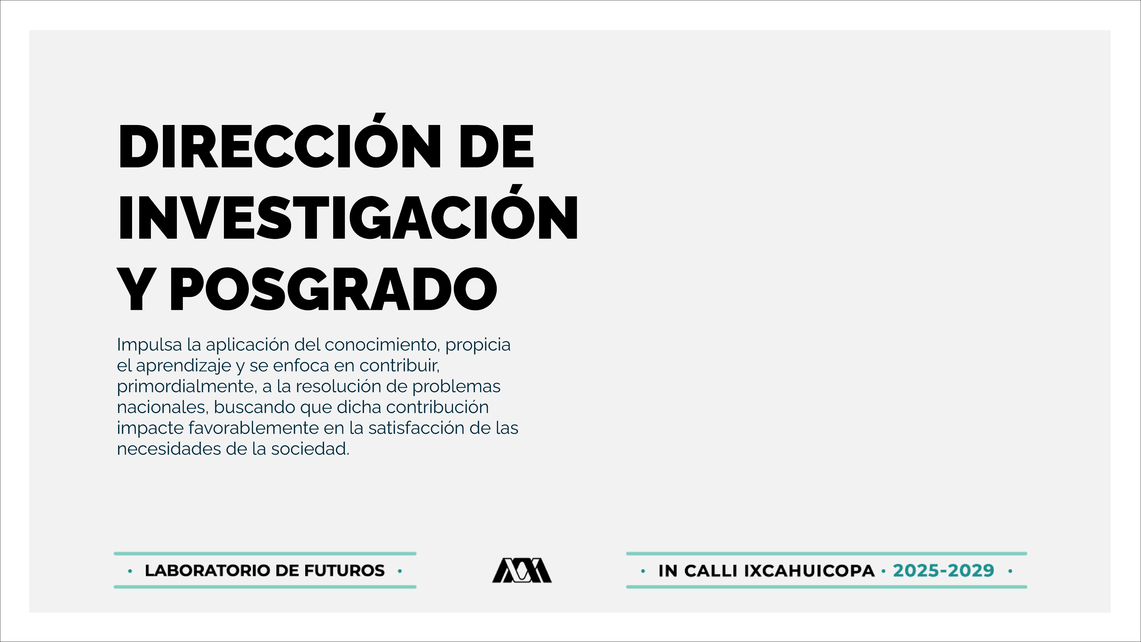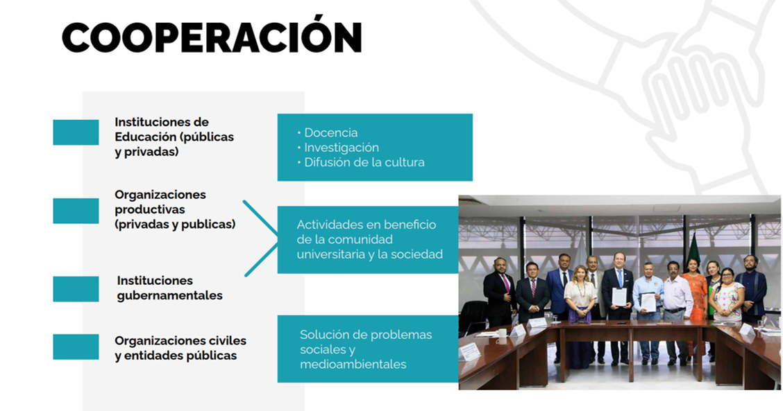 Integrar las actividades académicas de docencia, investigación y preservación y difusión de la cultura de la Universidad con su entorno, al incluir a la propia comunidad universitaria, por medio de la realización de proyectos de investigación patrocinada, desarrollo científico, divulgación cultural e integración académica, entre otros; con oportunidad, transparencia, responsabilidad social, sustentabilidad, eficacia y financiamiento externo, y que además, contribuyan al reconocimiento y posicionamiento institucional en el ámbito nacional e internacional al preservar el prestigio y valoración social de la Universidad..